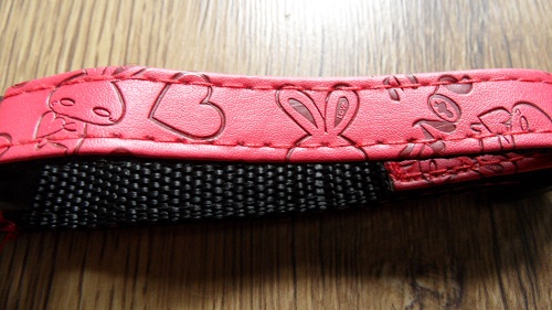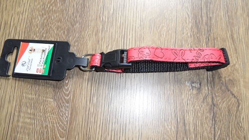 Nyakörv kutyának, piros, nyuszi mintával, 28-38cm, műbőr