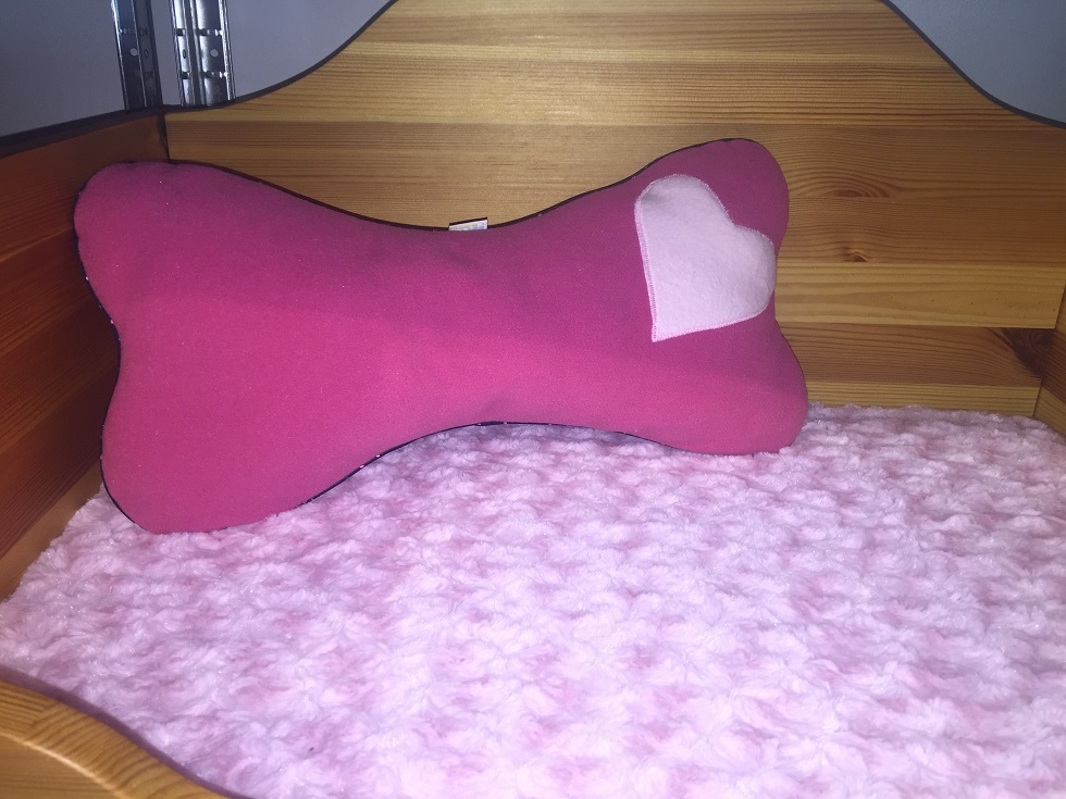 Kutyapárna - csont alakú párna kutyáknak dark pink fehér szív 4