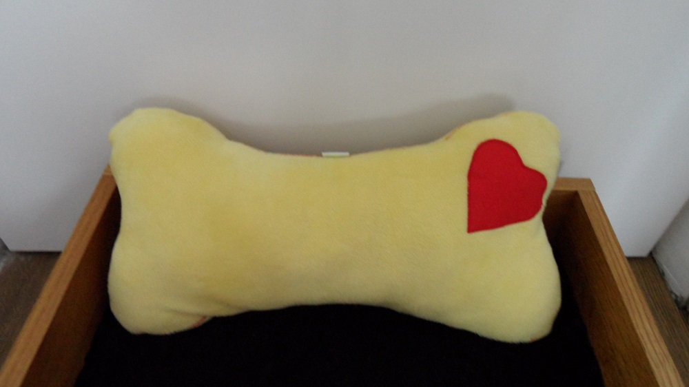 Kutyapárna - csont alakú párna kutyáknak sárga piros szívvel 13
