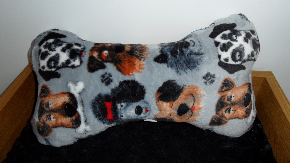 Kutyapárna - csont alakú párna kutyáknak szürke alapon kutya mintákkal 27