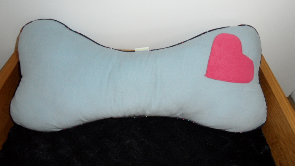 Kutyapárna - csont alakú párna kutyáknak világos kék pink szívvel 47