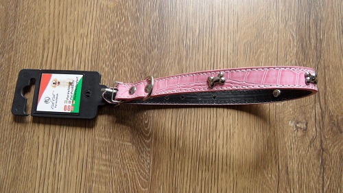Nyakörv kutyának, pink, fém dísszel, 24-39cm, műbőr