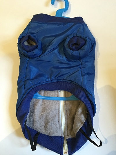 Felülről belebújós, felülzipzáros kutyakabát.