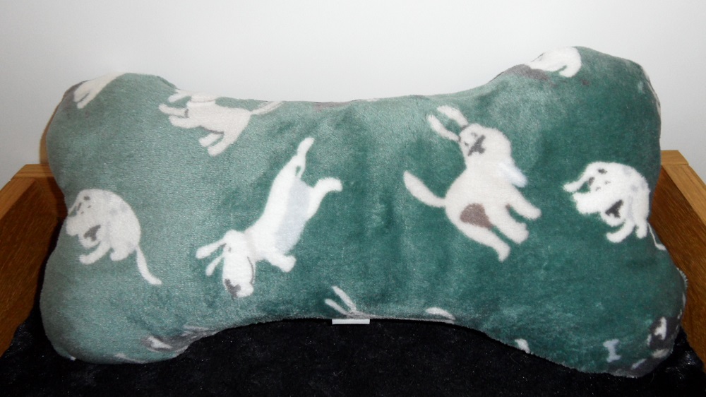 Vagner kutyapárna - Csont alakú párna kutyáknak zöld fehér kutyusokkal 37